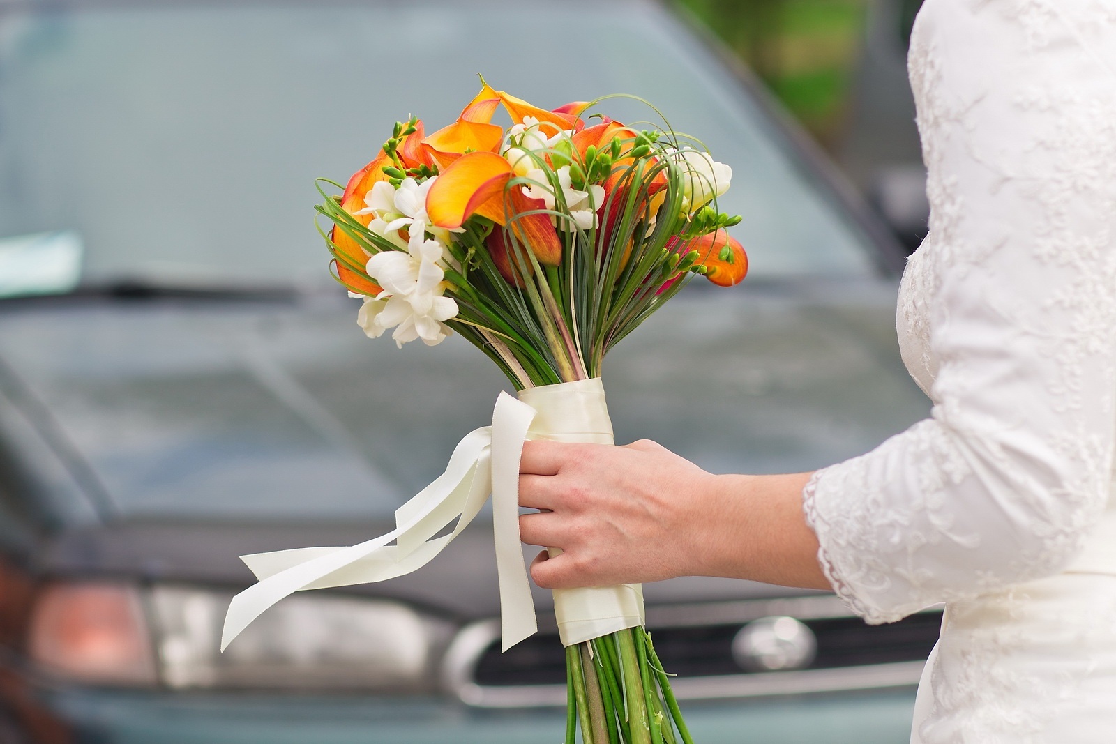 Autumn orange calla wedding bouquet 1158313
