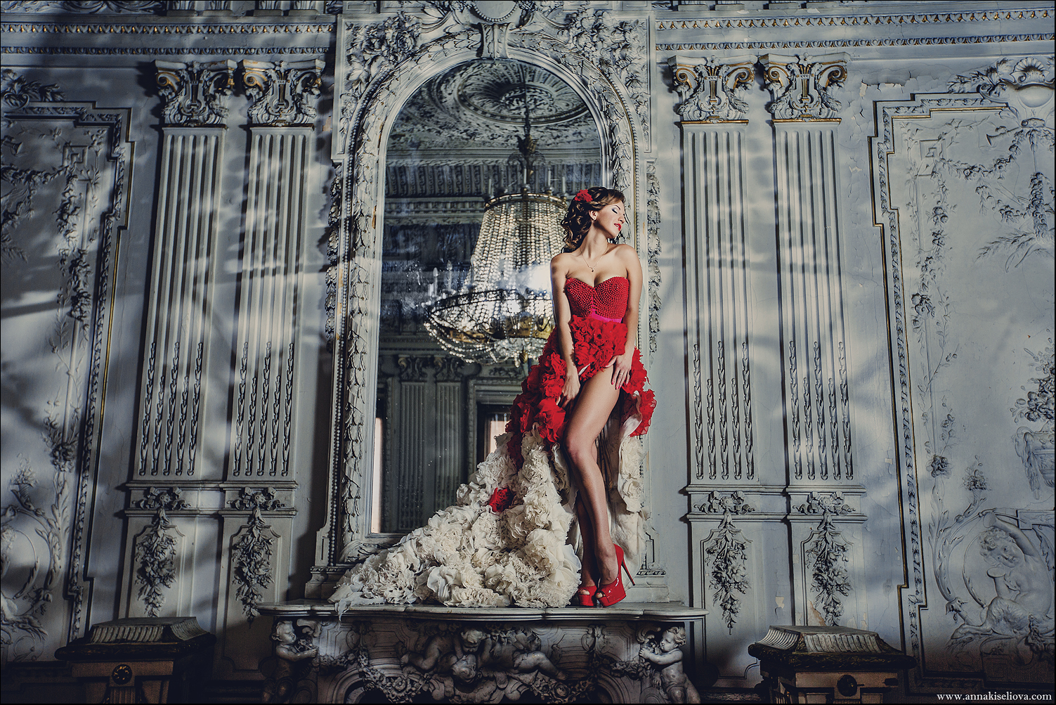 Red long train wedding dresses 1443339