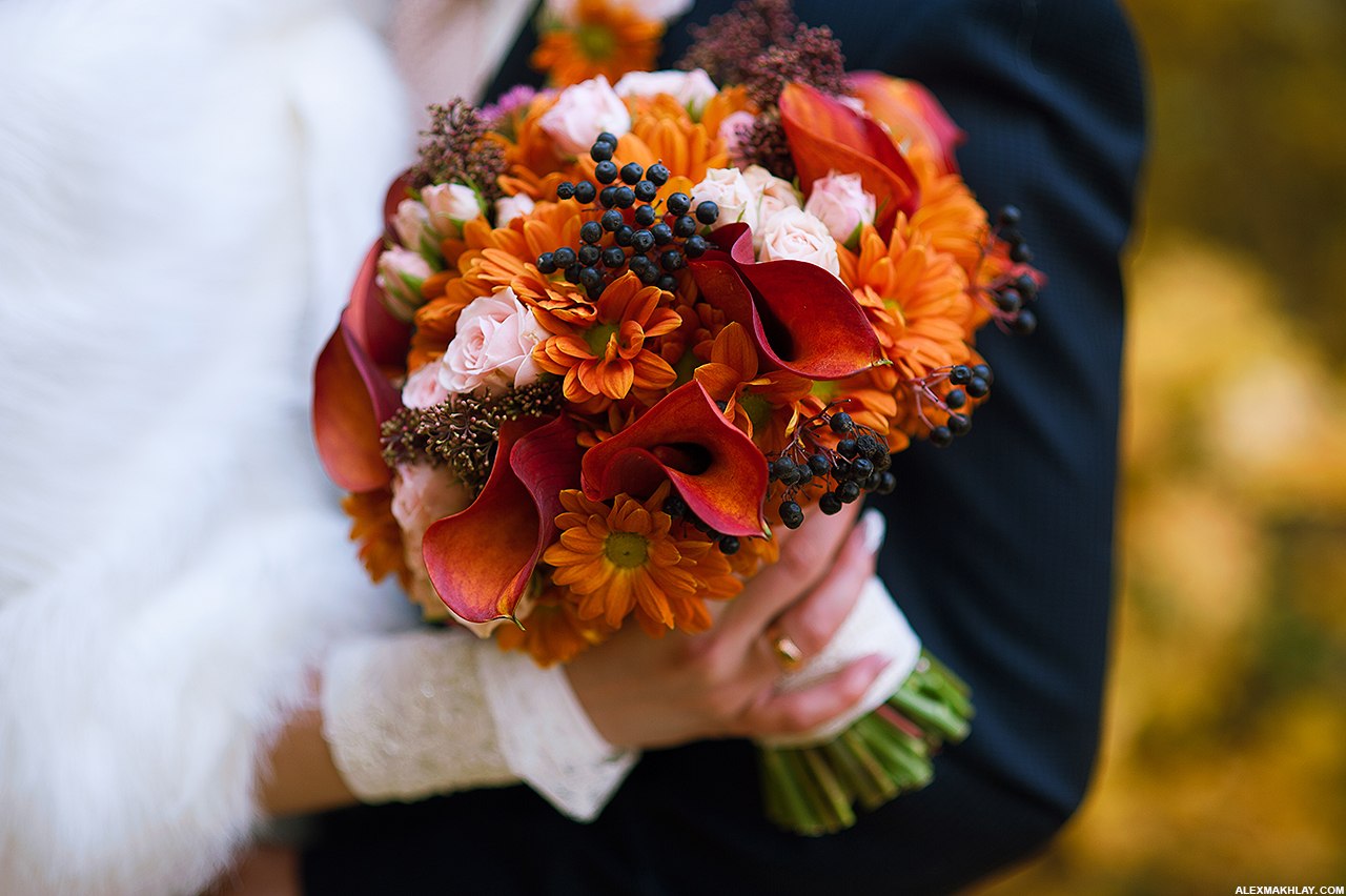 Orange rose wedding bouquet 2032216