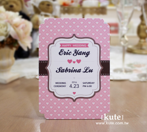 【厚卡喜帖wedding invitations】KB025P 心型花紋婚卡(粉)