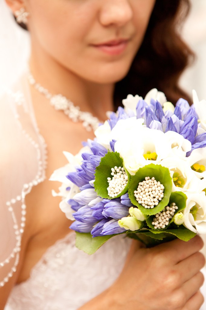 Spring blue tulip wedding bouquet 633007