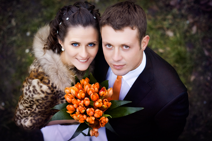 Spring orange tulip wedding bouquet 955233